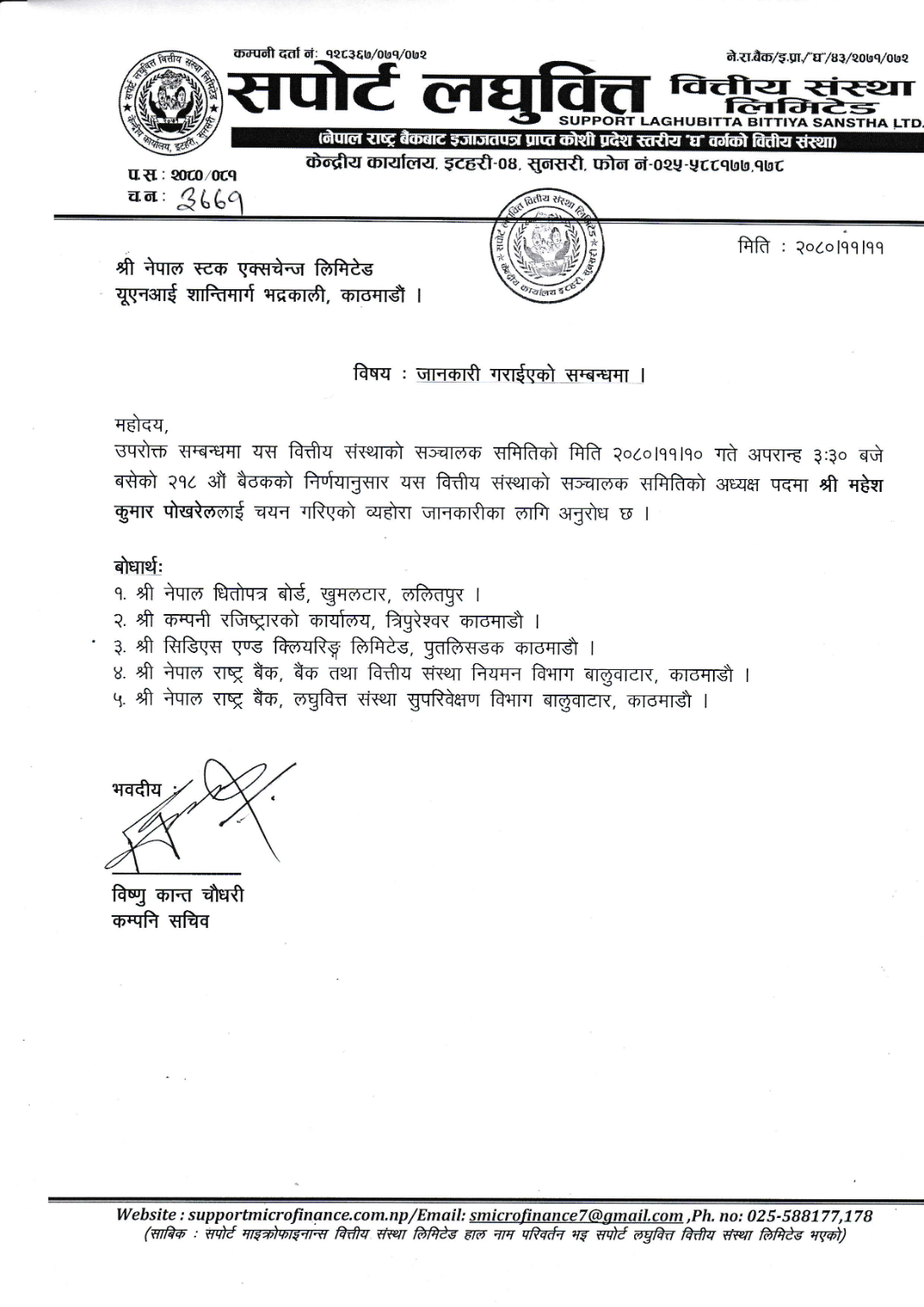 काठमाण्डौ । सपोर्ट लघुवित्त वित्तीय संस्थाको अध्यक्षमा महेश कुमार पोखरेल चयन भएका छन् । कम्पनीको फागुन १० गते बसेको संचालक समितिको बैठकले पोखरेललाई अध्यक्ष चयन गरेको हो ।