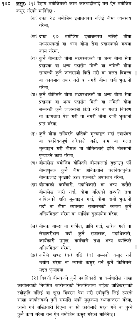यसअघि बीमा ऐनको उक्त दफामा बीमा कसुर ठहरिने मुद्दाको कारबाही र किनारा गर्ने अधिकार कसैलाई तोकिएको थिएन। अब भने जिल्ला अदालतहरुले यो अधिकार पाएका छन्।