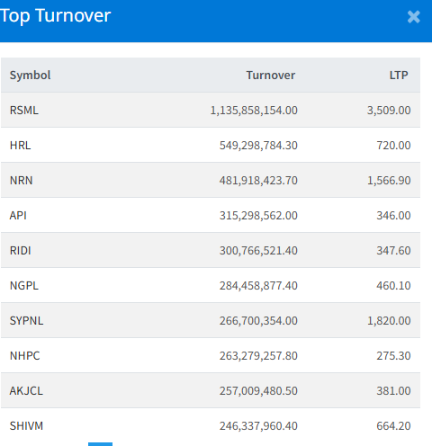 बजारमा आज करिब ११ अर्ब रुपैयाँको कारोबार भएको छ। सर्वाधिक कारोबार रिलायन्स स्पिनिङ मिल्सको भएको छ।